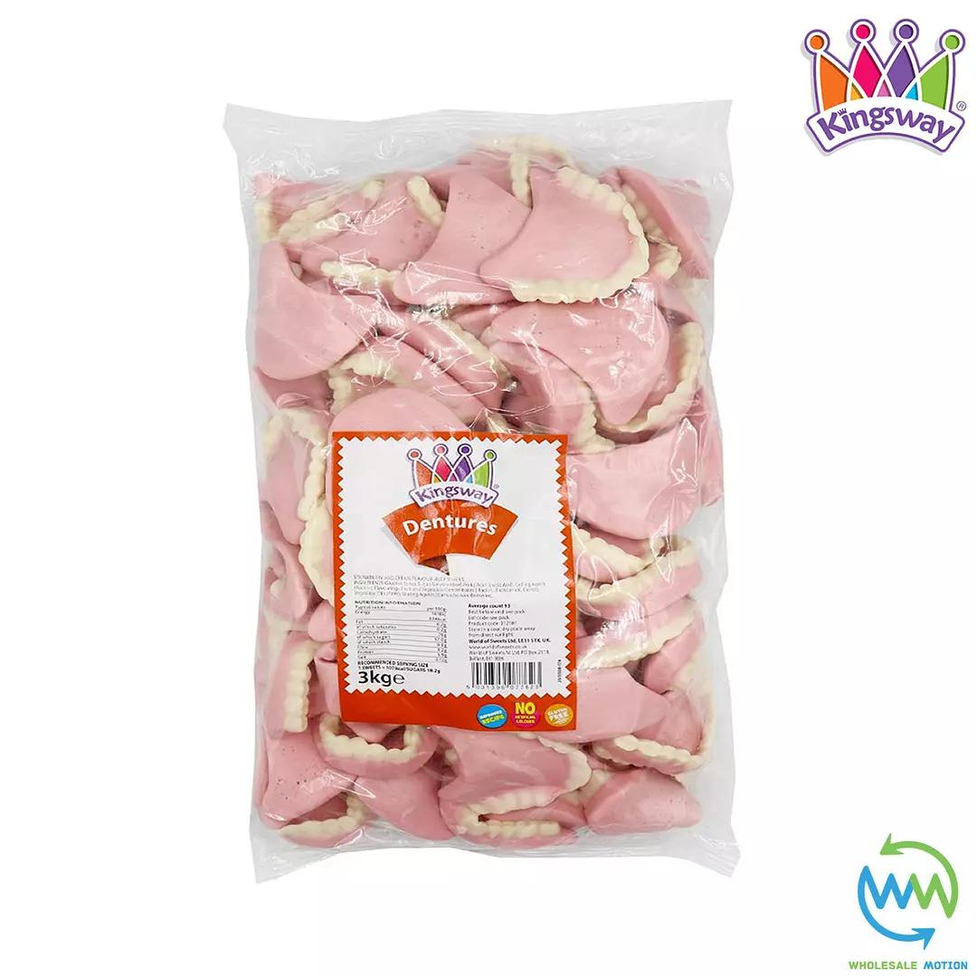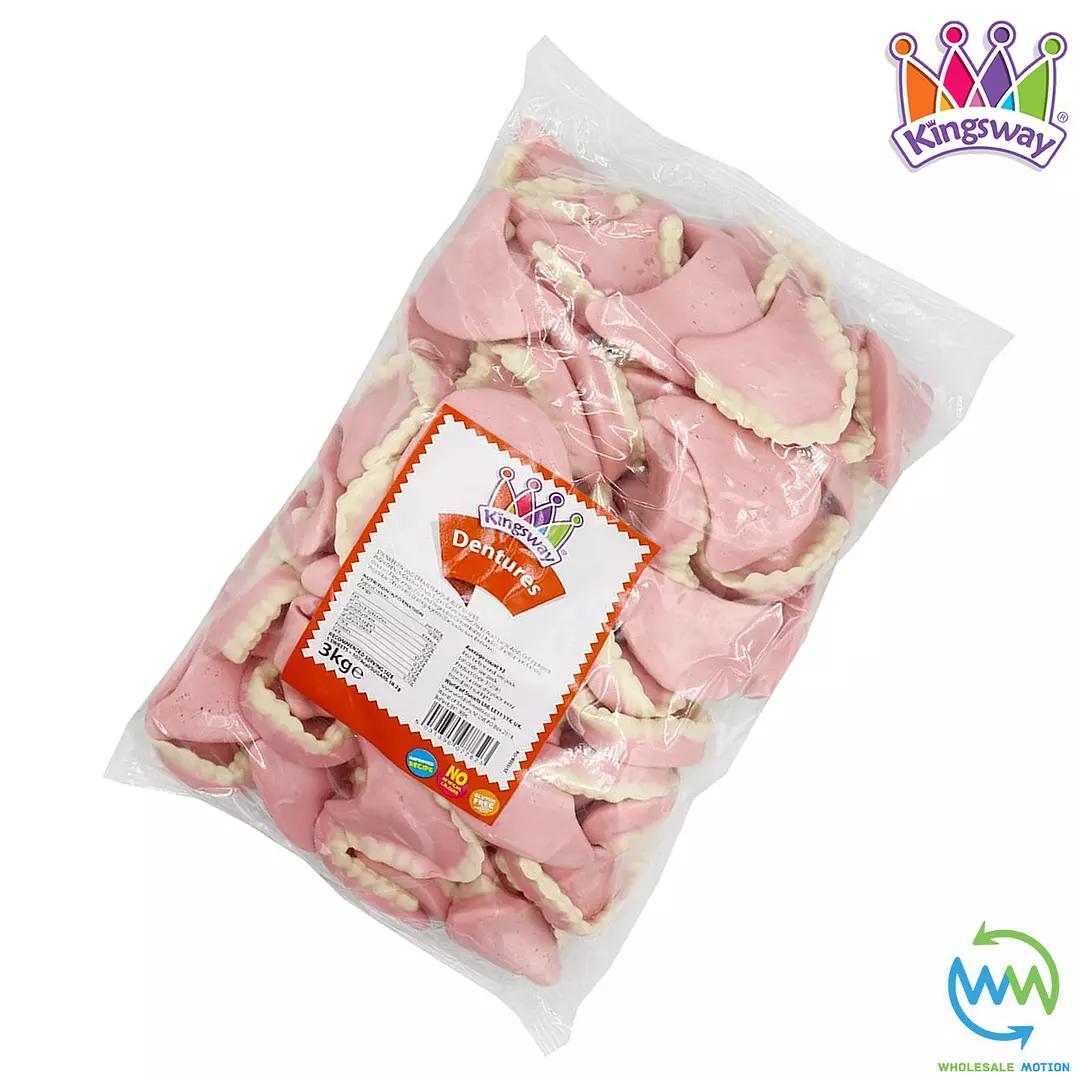 These Premium Quality Kingsway Dentures are perfect for snacks, childrens treats, parties or events etc! With their novelty teeth design & delicious strawberry & cream flavour they are a must have for every sweet lover! Available in weights of 1, 100g, 250g, 500g, 750g, 1kg, 1.5kg, 2kg, 2.5kg & 3kg Dentures from the drop down menu above. Take advantage of our low prices today!