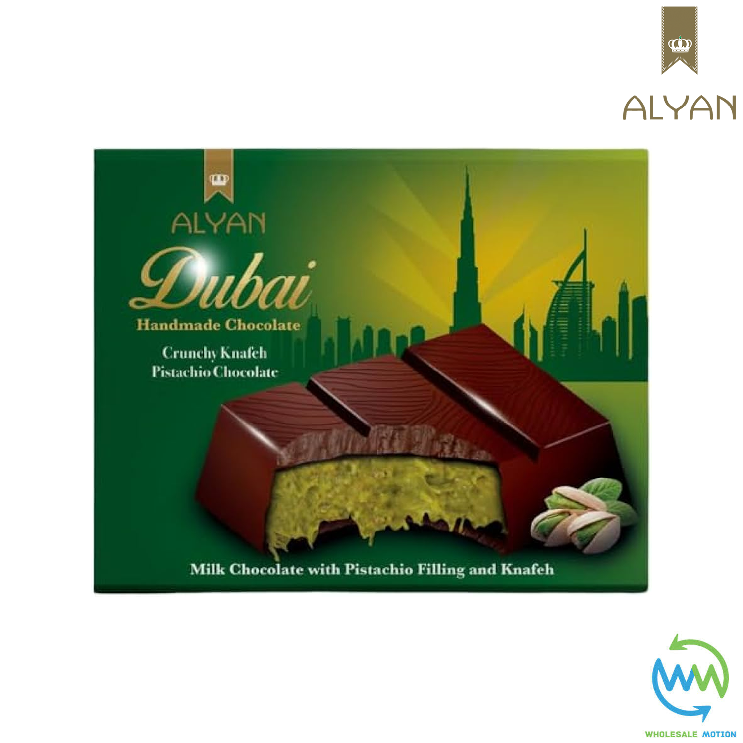 Alyan Dubai Chocolate Bar 100g Crunchy KNAFEH and PISTACHIO Milk Chocolate