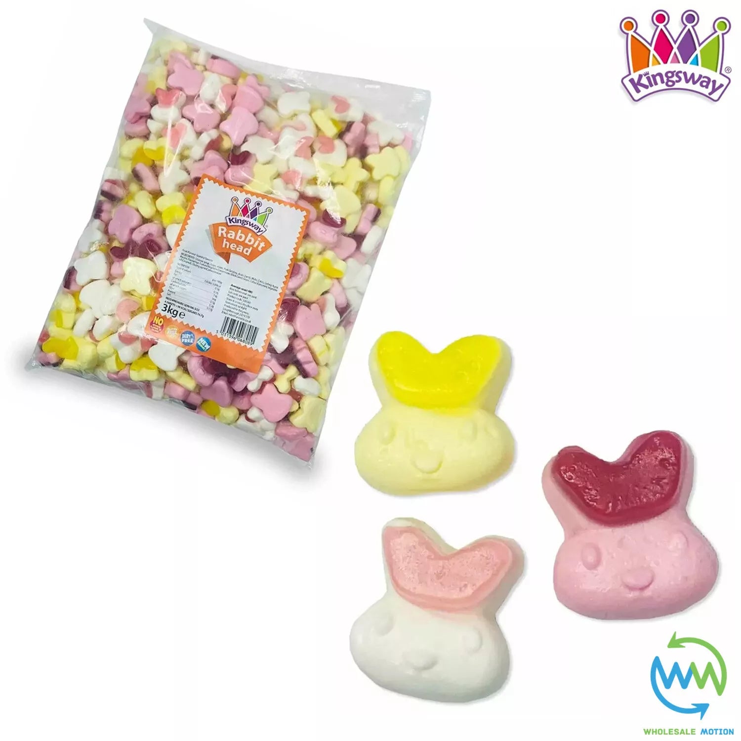 These Premium Quality Original Kingsway Rabbit Head Sweets are perfect for Easter, snacks, parties or events etc! With their fun novelty bunny head shape and delicious fruity flavours they are a must have every Easter! Available in weights of 1, 100g, 250g, 500g, 1kg, 1.5kg, 2kg & 3kg Gummy Rabbit Head Sweets from the drop down menu above. Take advantage of our low prices today!