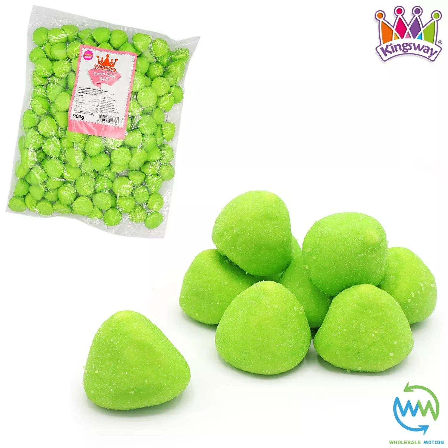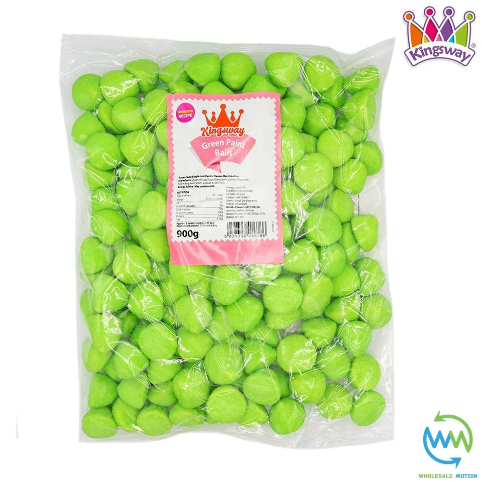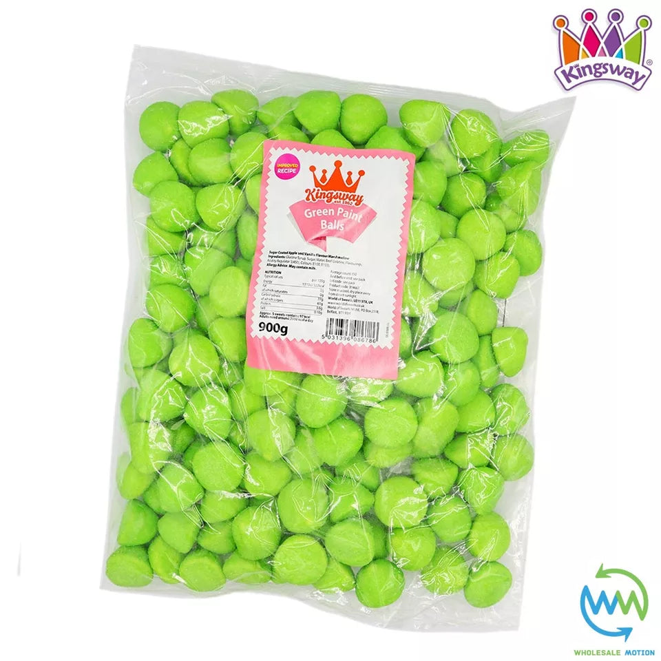 GREEN PAINT BALLS Sweets APPLE Gummy Candy MARSHMALLOW Jelly GUMMIES Jellies SUGAR COATED Mallow Vanilla Snack Kingsway PICK N MIX UK