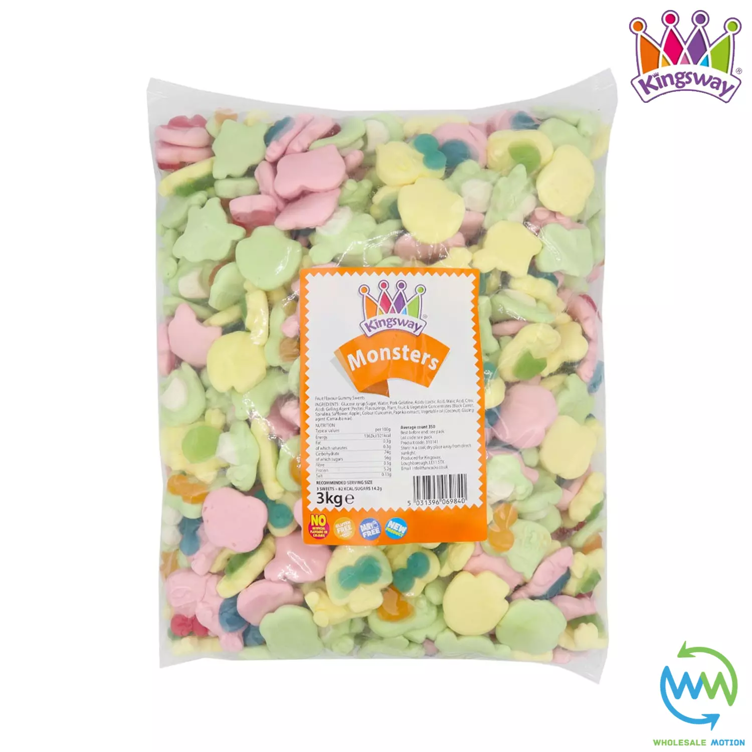 These Premium Quality Original Kingsway Monsters are perfect for snacks, childrens treats, parties or events etc! With their fun novelty monster shapes and deliciously fruity taste they are a must have every Halloween! Available in weights of 1, 100g, 250g, 500g, 750g, 1kg, 1.5kg, 2kg, 2.5kg & 3kg Monsters from the drop down menu above. Take advantage of our low prices today!