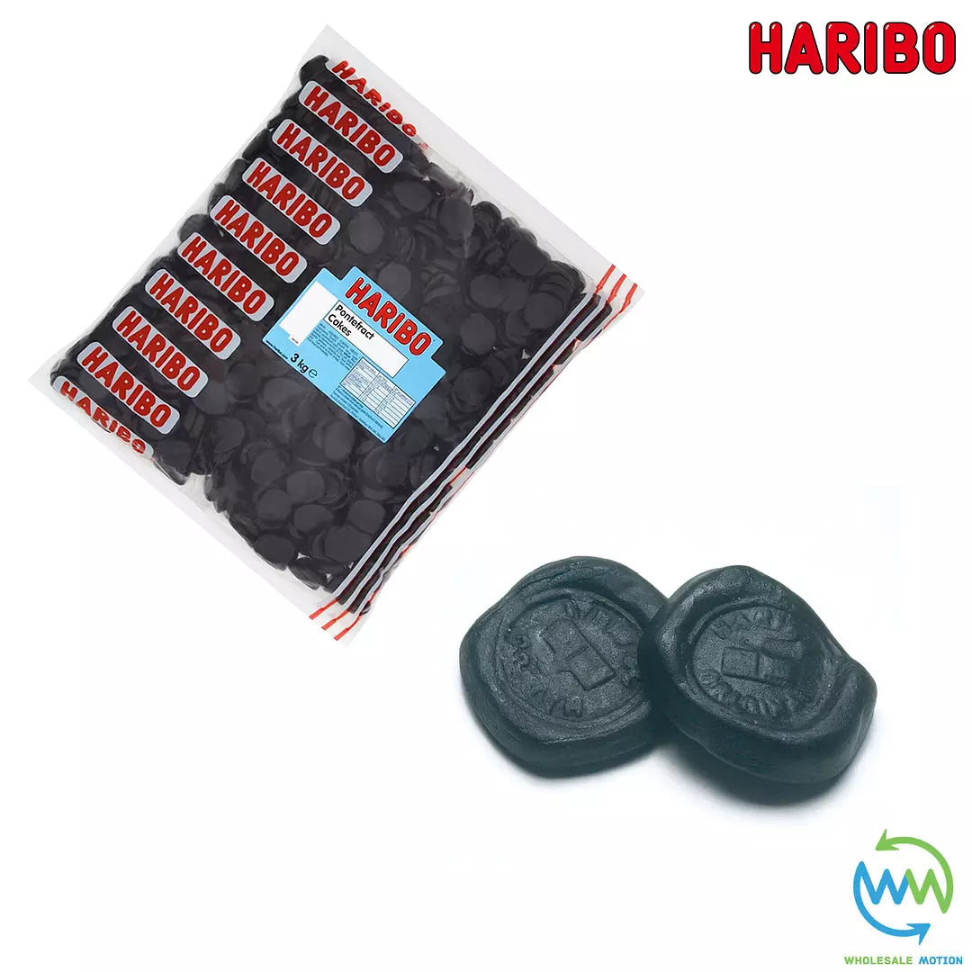These Premium Quality Original Haribo Gummy Pontefract Cakes are perfect for are perfect for childrens treats, parties, events etc! With their novelty disc shape design and delicious liquorice taste they are a must have every sweet bag. Available in weights of 1, 100g, 250g, 500g, 750g, 1kg, 1.5kg, 2kg, 2.5kg & 3kg Pontefract Cakes from the drop down menu above. Take advantage of our low prices today!