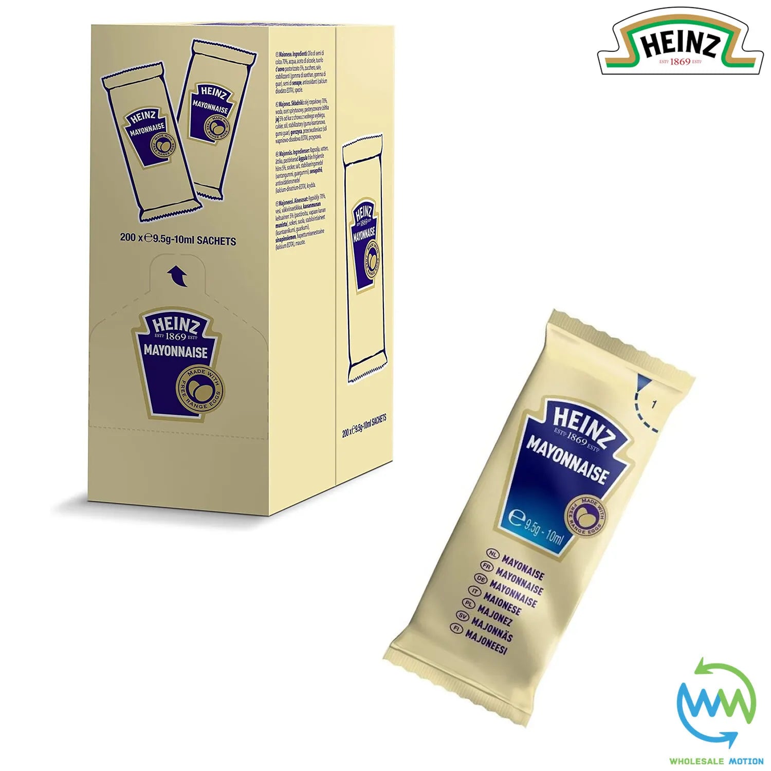 HEINZ MAYONNAISE Sachets 9.5g 10ml SAUCE Individual Single Portion SACHET Mayo