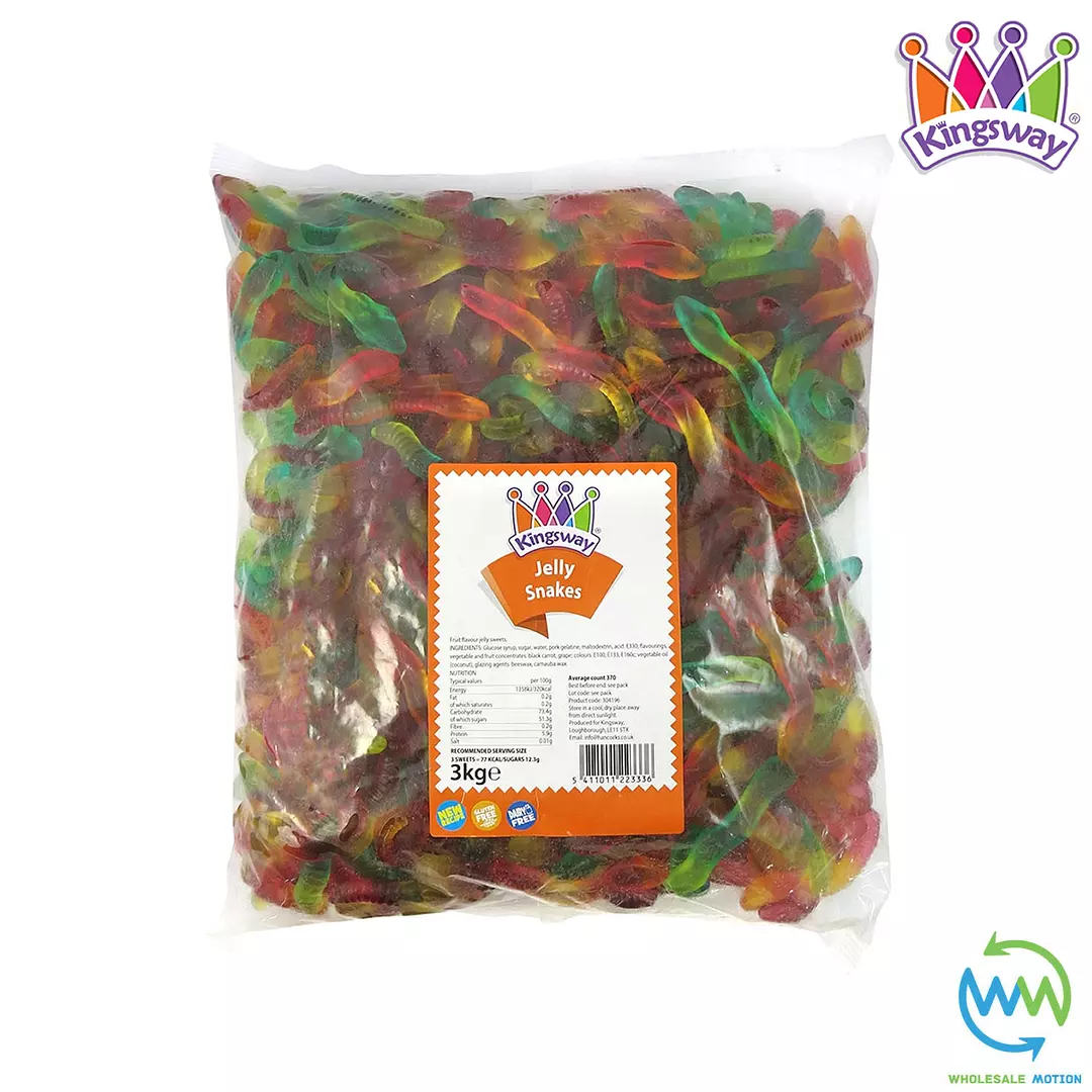 These Premium Quality Kingsway Jelly Snakes are perfect for snacks, childrens treats, parties or events etc! With their novelty snake designs & delicious fruity flavours they are a must have for every sweet lover! Available in weights of 1, 100g, 250g, 500g, 750g, 1kg, 1.5kg, 2kg, 2.5kg & 3kg Jelly Snakes from the drop down menu above. Take advantage of our low prices today!