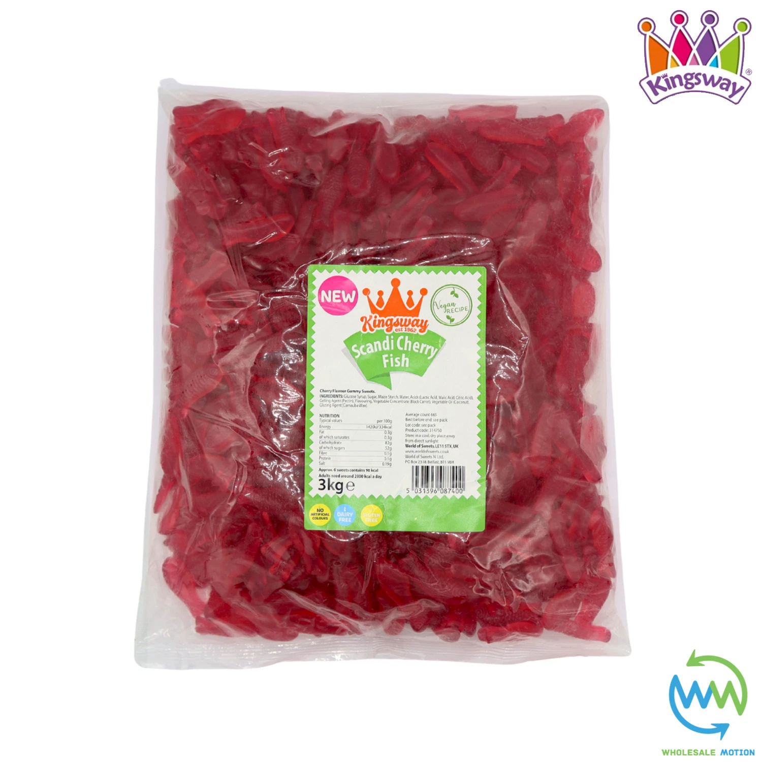These Premium Quality Original Kingsway Vegan Cherry Fish are perfect for snacks, childrens treats, parties or events etc! With their Fun fish shape and delicious Cherry flavour they are a must have for any sweet lover! Available in weights of 1, 100g, 250g, 500g, 750g, 1kg, 1.5kg, 2kg, 2.5kg & 3kg Cherry Fish from the drop down menu above. Take advantage of our low prices today!