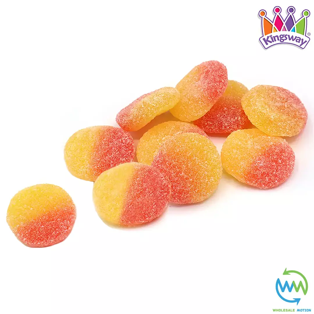 These Premium Quality Original Kingsway Sweet Peaches are perfect for gifts, snacks, parties or events etc! With their novelty disc design and delicious peach taste they are a must have for any sweet lover! Available in weights of 1, 100g, 250g, 500g, 750g, 1kg, 1.5kg, 2kg, 2.5kg & 3kg Sweet Peaches from the drop down menu above. Take advantage of our low prices today!