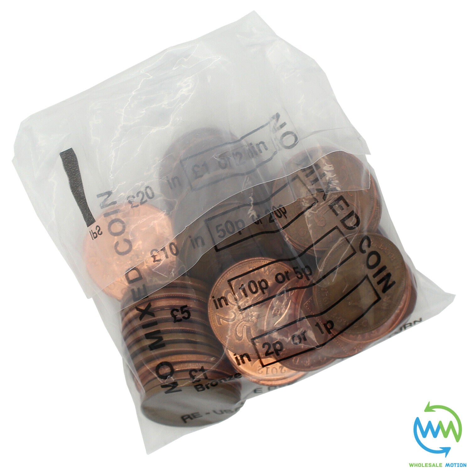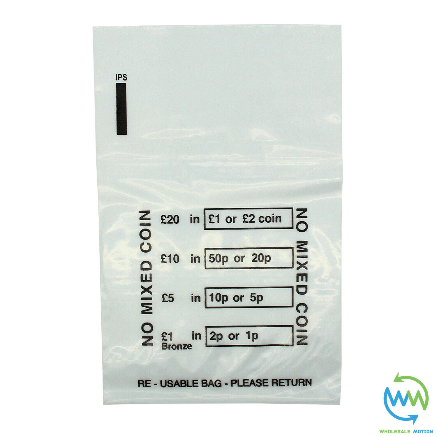 Plastic COIN BAGS No Mixed Coins Cash MONEY BANK Retail CHANGE Denominated Bag