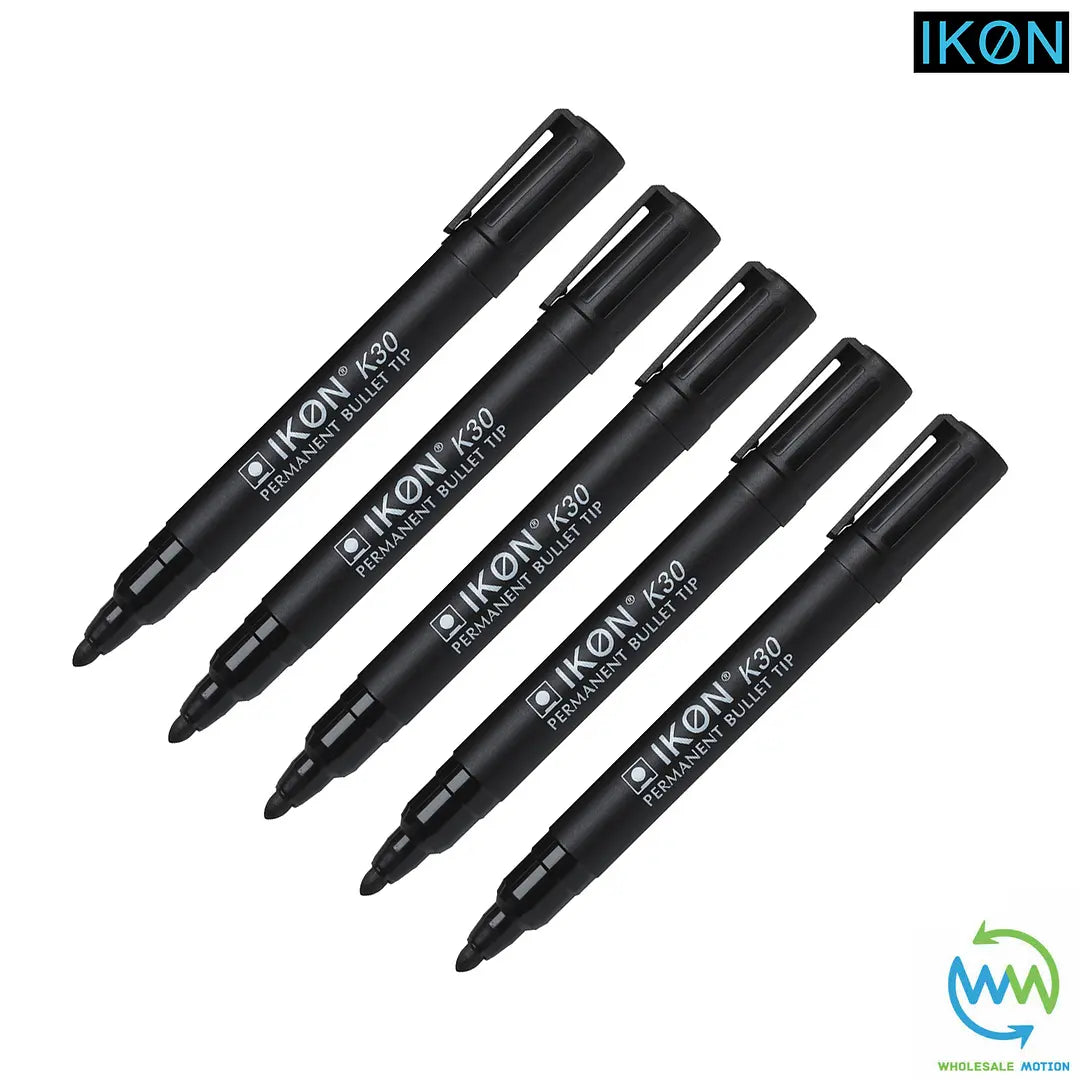 Black PERMANENT MARKER Pens BULLET POINT Tip Markers Pack IKON K30 Sharpie PEN