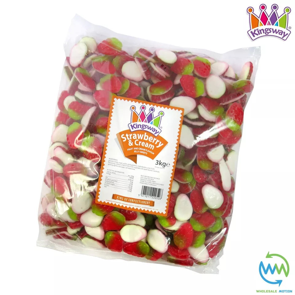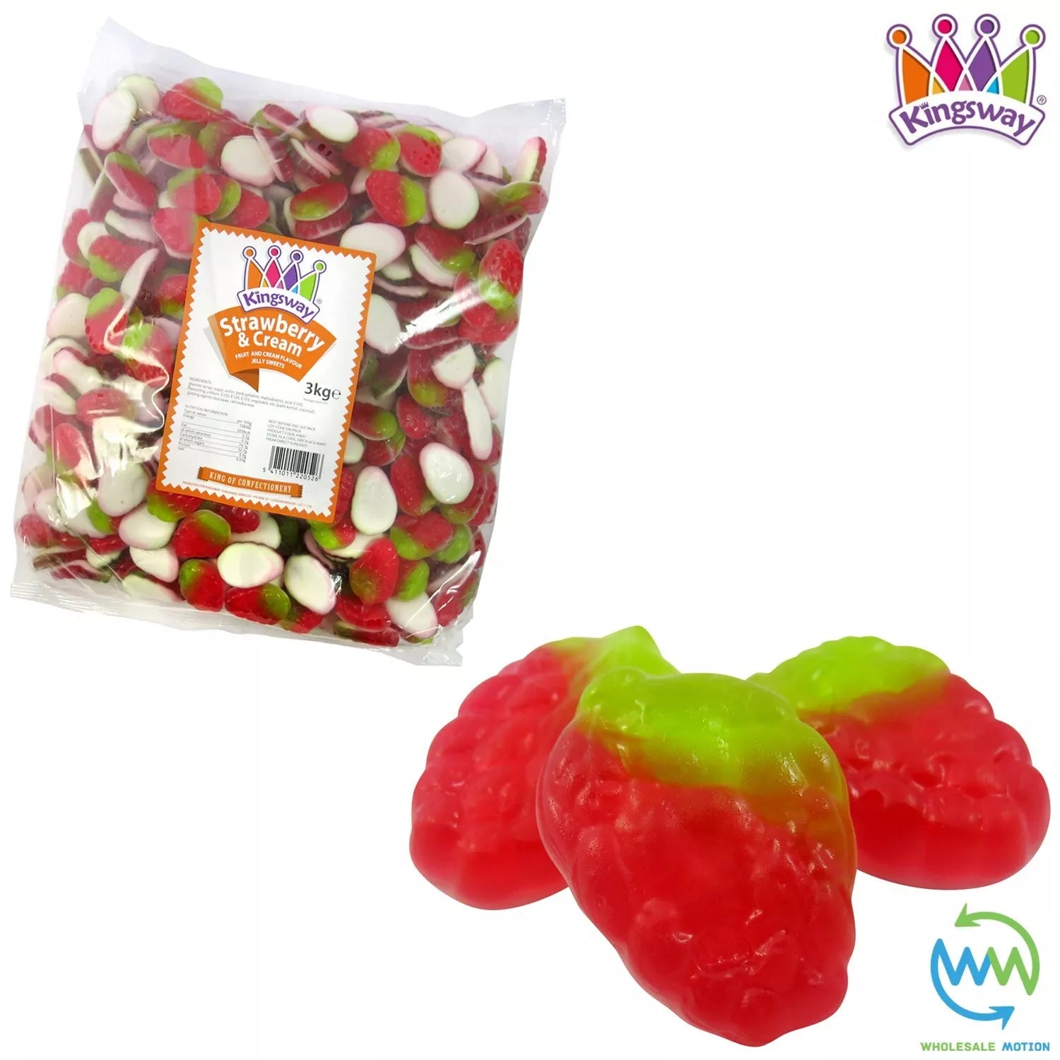 STRAWBERRY & CREAM Sweets GUMMY Candy STRAWBERRIES JELLY Kingsway PICK N MIX NEW Jellies FOAM Snack Fruit