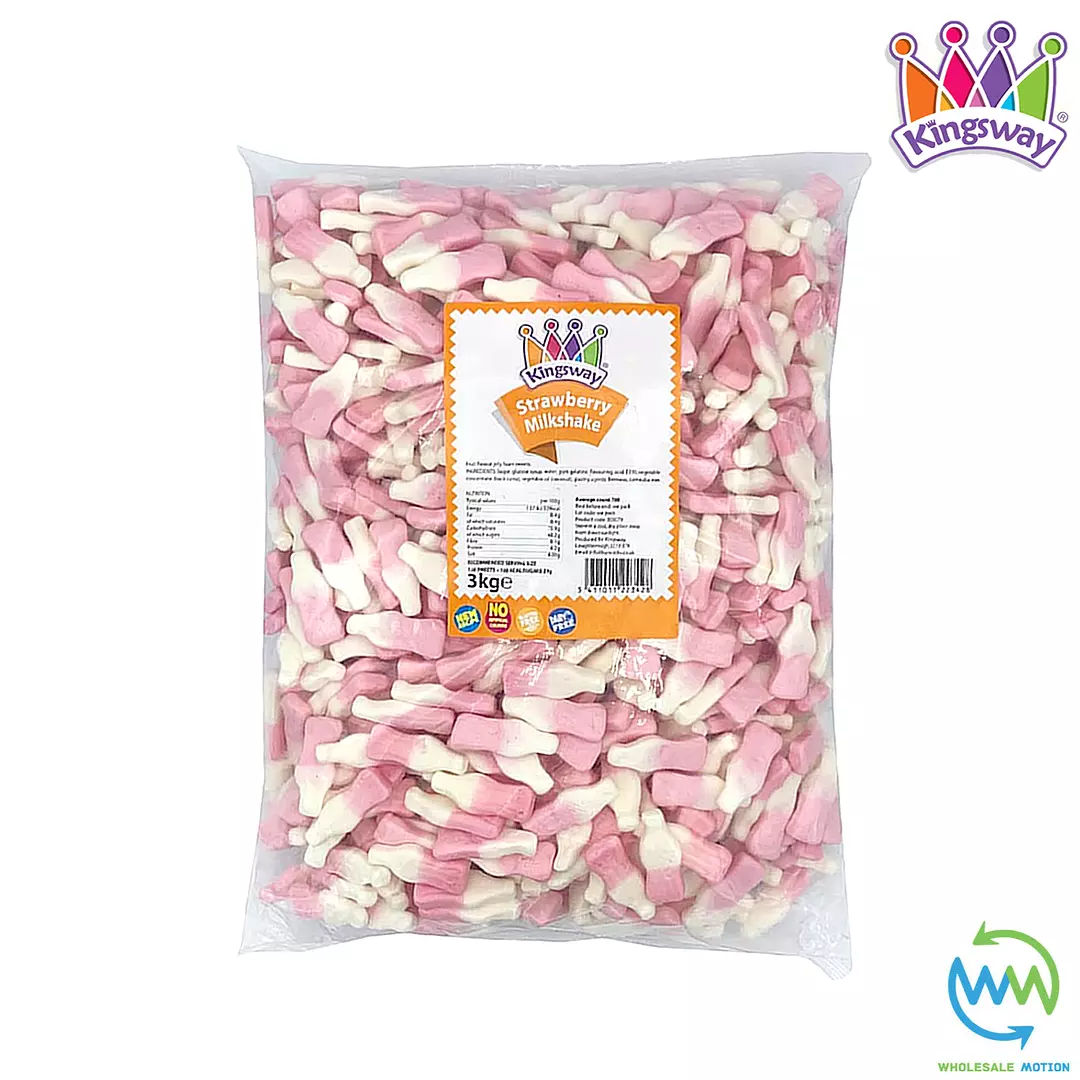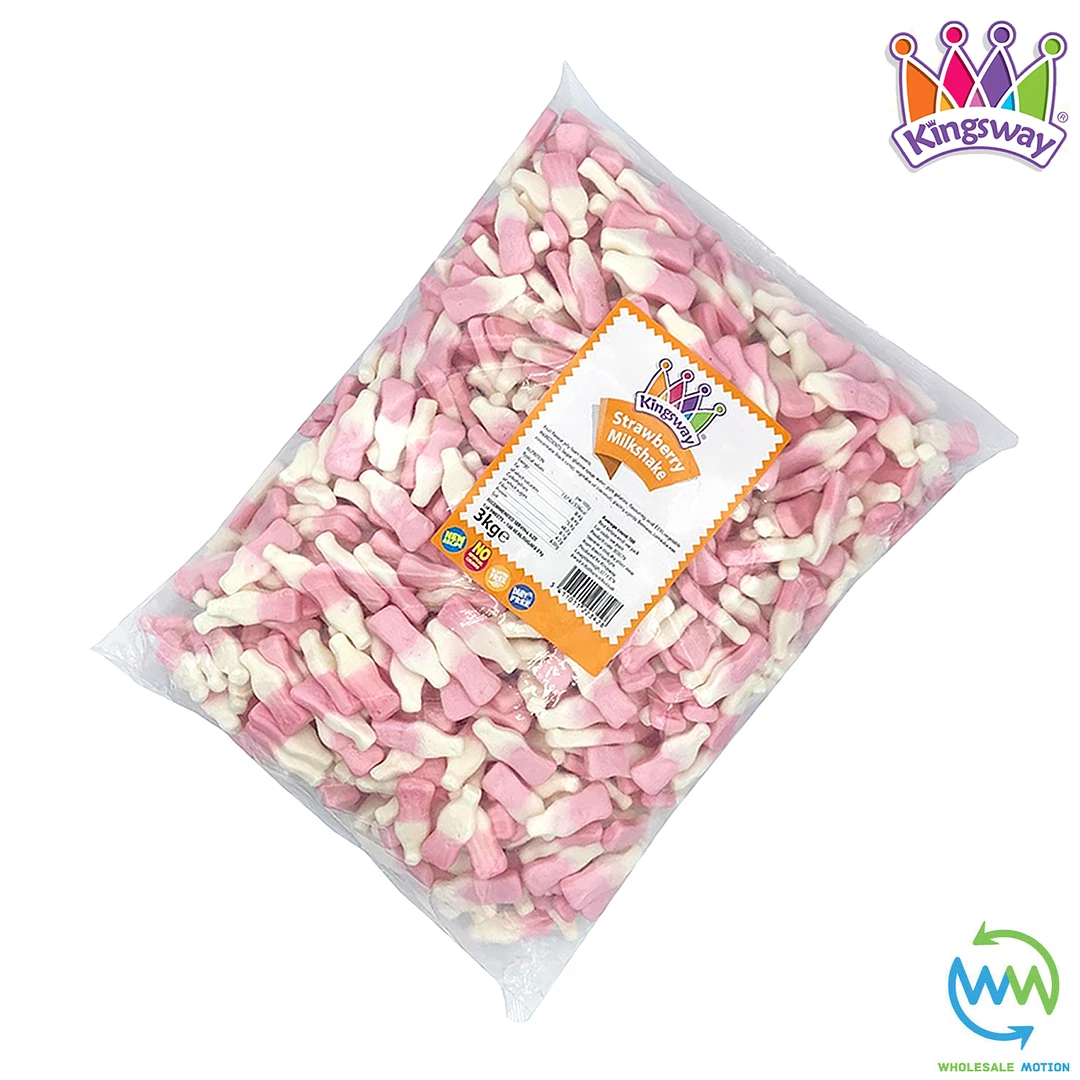 These Premium Quality Original Kingsway Strawberry Milkshake Bottles are perfect for gifts, snacks, parties or events etc! With their novelty milkshake bottle design and delicious strawberry taste they are a must have for any sweet lover! Available in weights of 1, 100g, 250g, 500g, 750g, 1kg, 1.5kg, 2kg, 2.5kg & 3kg Strawberry Milkshake Bottles from the drop down menu above. Take advantage of our low prices today!