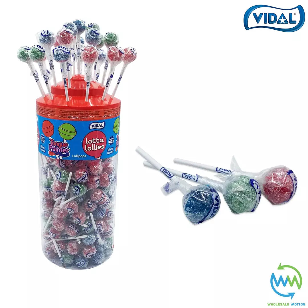 These Premium Quality Vidal Lotta Lollies Tongue Painter Original Lollipops are perfect for snacks, childrens treats, parties or events etc! With their individually wrapped packaging they preserve the amazing mixed fruit flavour you know and love. Available in quantities of 1, 10, 20, 30, 40, 50, 75, 100, 150, 200 & 300 Vidal Lollipops from the drop down menu above. Take advantage of our low prices today!