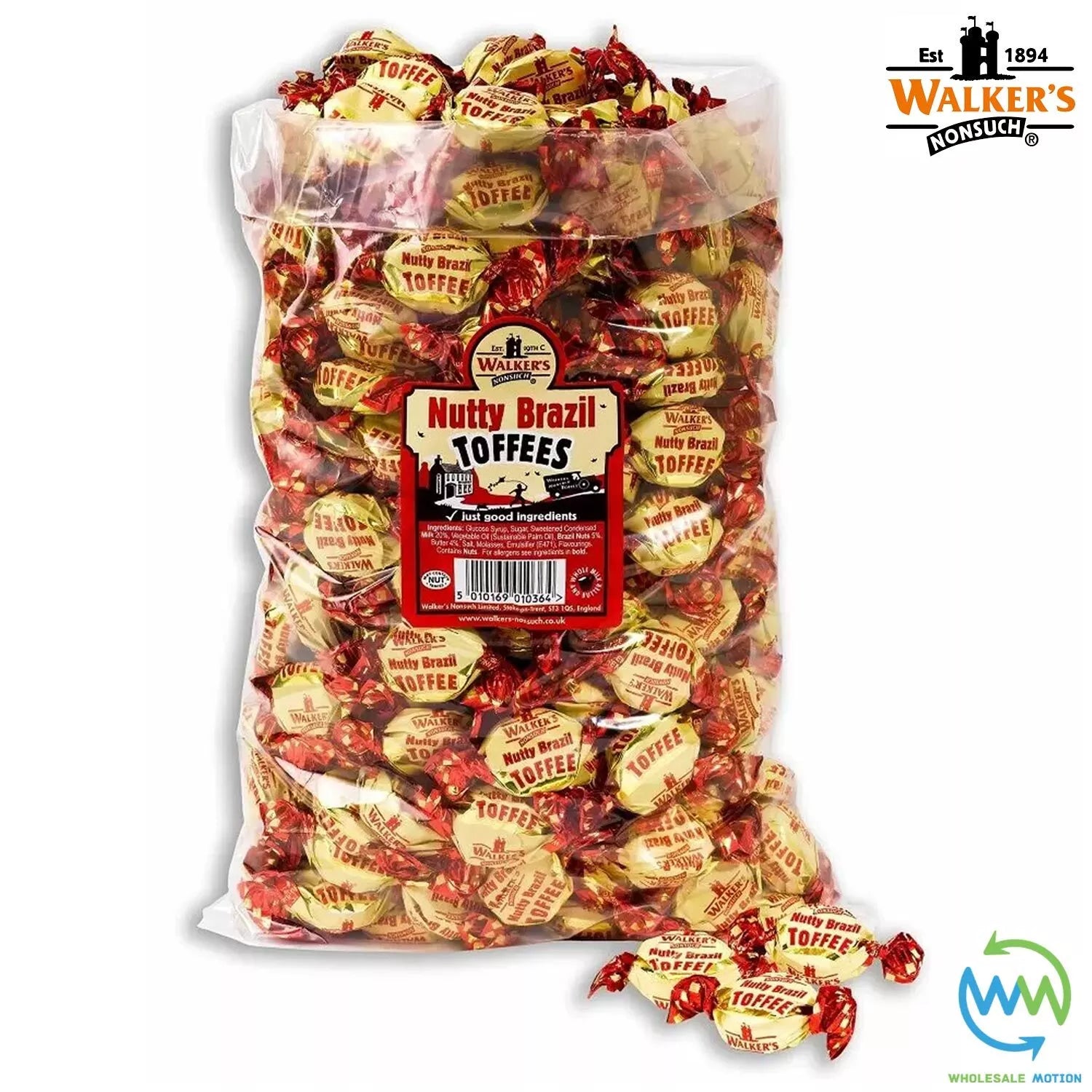 These Premium Quality Original Walker's Nonsuch Nutty Brazil Toffees are perfect for snacks, treats, parties, events etc! Their old fashioned and delicious Walkers flavour makes them the ultimate traditional nutty Brazil toffee for every occasion! Available in weights of 100g, 250g, 500g, 1kg, 1.8kg & 2.5kg nutty Brazil toffees from the drop down menu above. Take advantage of our low prices today!