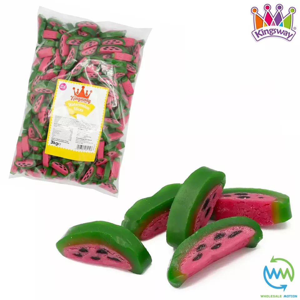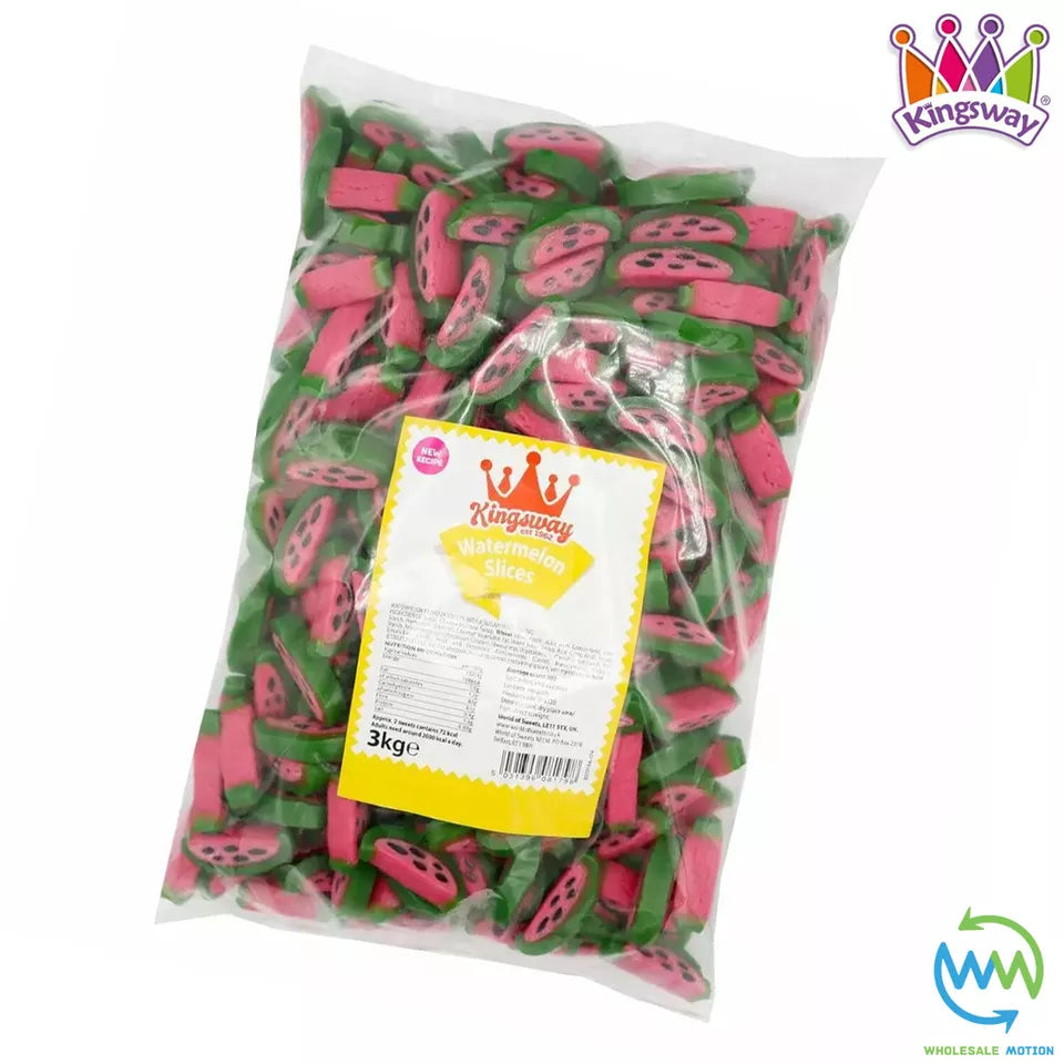 These Premium Quality Original Kingsway Watermelon Slices are perfect for gifts, snacks, parties or events etc! With their novelty watermelon slice design and delicious sugar paste filling they are a must have for any sweet lover! Available in weights of 1, 100g, 250g, 500g, 1kg, 1.5kg, 2kg, 2.5kg & 3kg Watermelon Slices from the drop down menu above. Take advantage of our low prices today!
